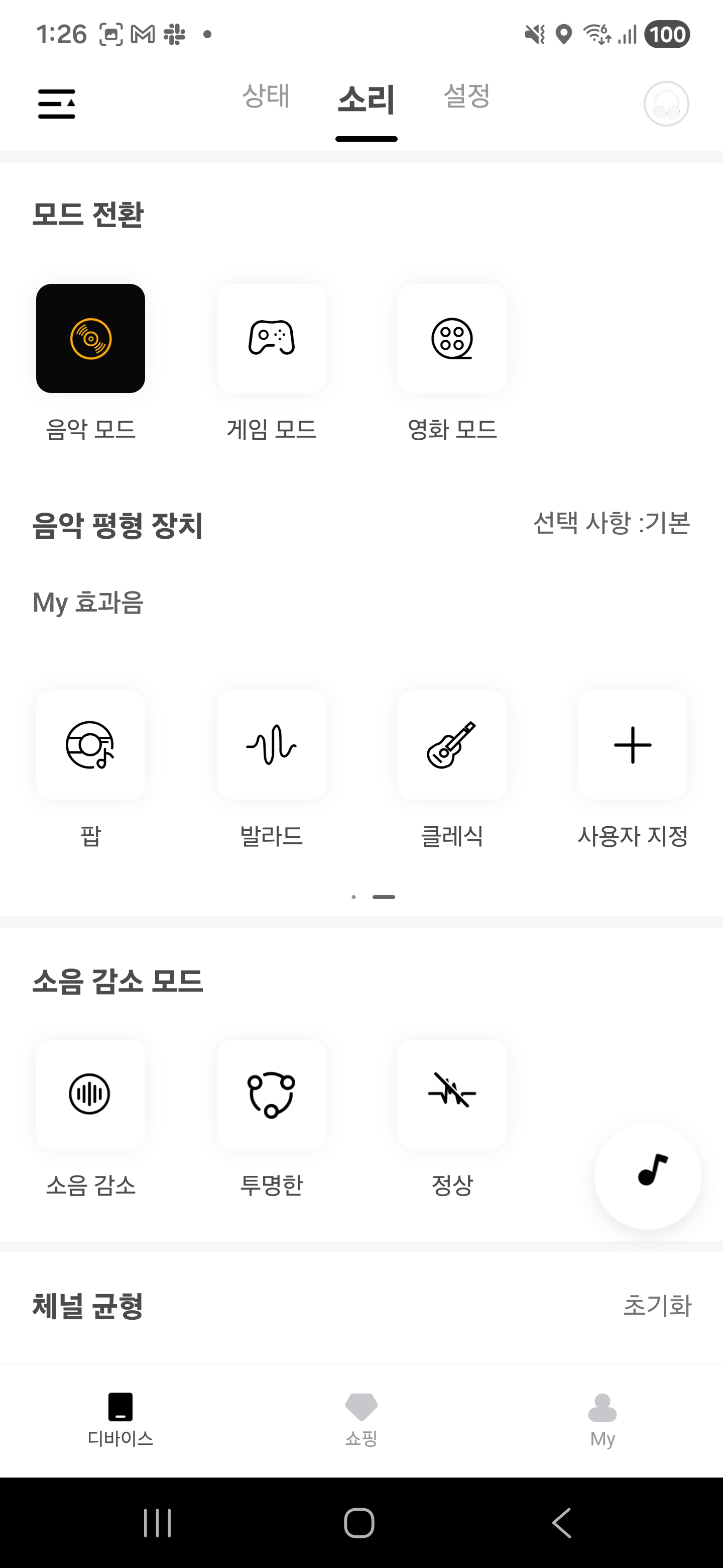 *음악 모드에서는 개인적으로는 중저음 이나 팝이 괜찮았습니다.